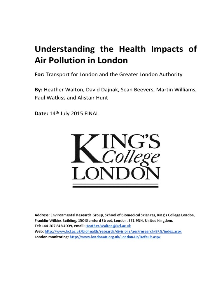 King S College London Report On Mortality Burden Of No2 And Pm2 5 In London Pdf Air Pollution Nitrogen Dioxide